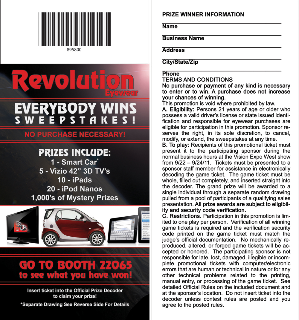 The Prize Decoder is fully customizable all the way to the scannable tickets you decide to use. You can chose to order the stock tickets or have them customized to your business.